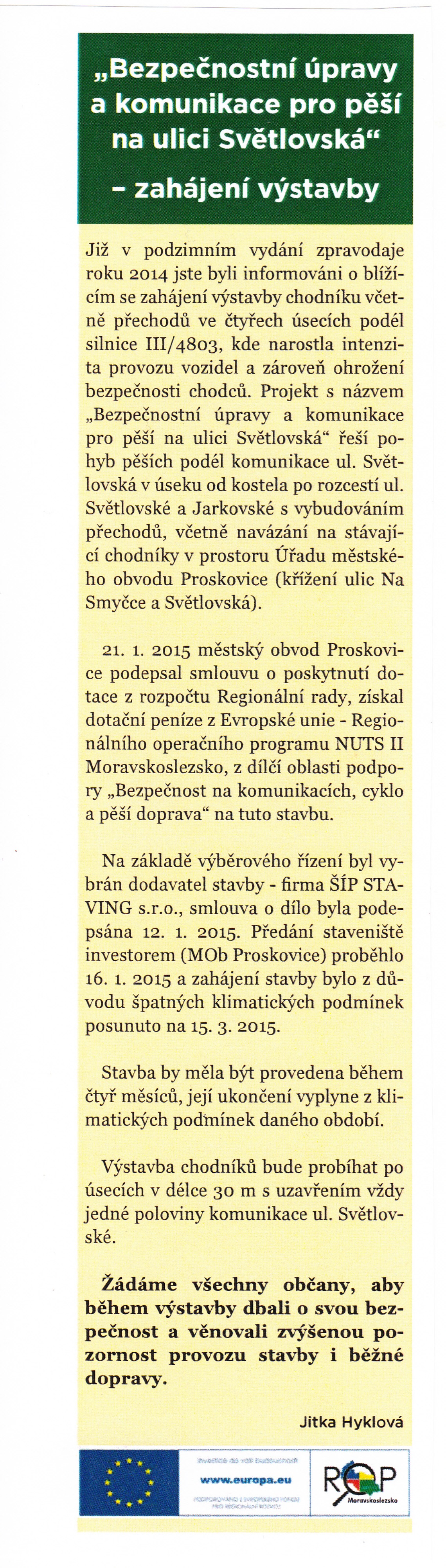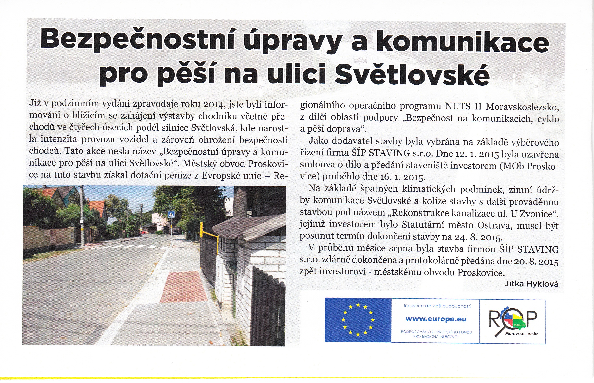 Bezpečnostní úpravy a komunikace pro pěší na ulici Světlovská - dotace z EU